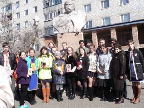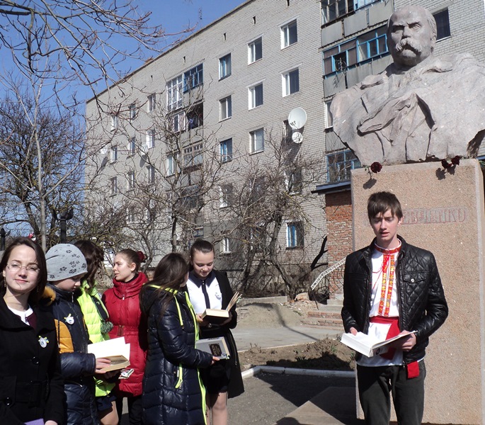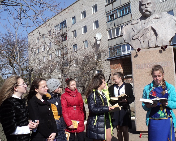 Біля пам’ятника Т.Г.Шевченку флешмоб розпочався із покладання квітів Великому Кобзареві, а потім зазвучали його немеркнучі слова… Проникливо читали Шевченкові поезії Віолетта Гудзь, Вероніка Гульчак, Ольга Борисова, Тетяна Валівко, Денис Димочко, Ірина Шишук, Вікторія Дудка та інші. Прочитали свої улюблені поезії Тараса Шевченка і члени літературно-мистецького клубу «Роксолана» М.І.Василенко та Л.О.Різун.