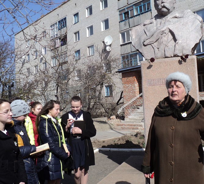 А далі всі учасники заходу пройшли по місту, запрошуючи перехожих взяти участь у флешмобі «Шевченка читаємо – Україну прославляємо!», який відбувся біля пам'ятника Тарасу Григоровичу Шевченку в центрі міста. Завітали вони і до райради та райдержадміністрації, міської ради, Будинку дитячої та юнацької творчості, магазинів, скрізь нагадуючи про Шевченкове слово та залишаючи у подарунок календарики із символікою шевченківських днів.