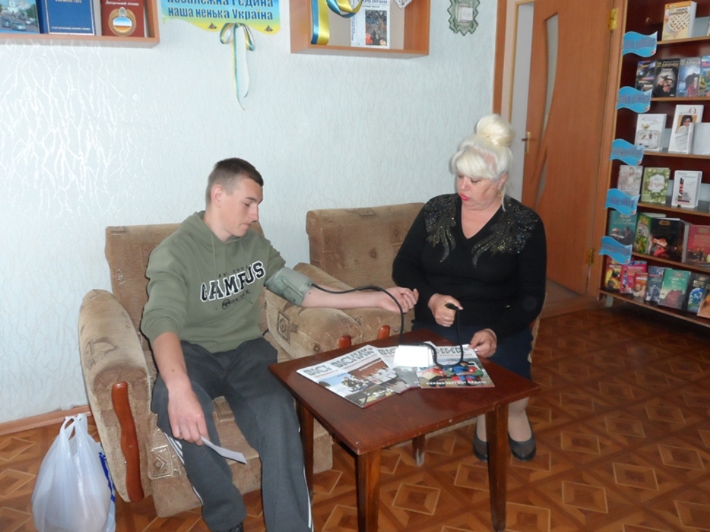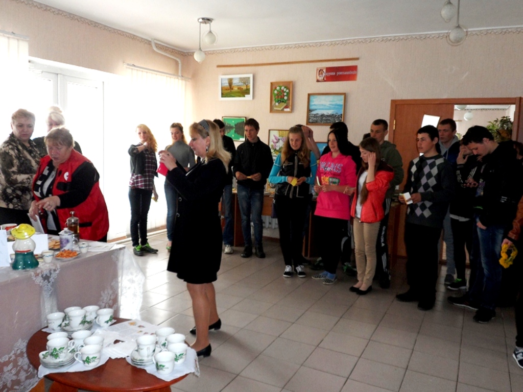Голова районної організації товариства Червоного Хреста Н.О.Корсакова розповіла про пріоритетні напрямки роботи товариства Червоного Хреста у наданні медичної, соціально-побутової, матеріальної та натуральної допомоги найбільш незахищеним верствам населення. А також закликала молоде покоління приєднуватися до благодійних справ товариства. Всі присутні переглянули відеофільм про роботу товариства Червоного Хреста України. По закінченню зустрічі всі бажаючі мали можливість визначити рівень артеріального тиску.