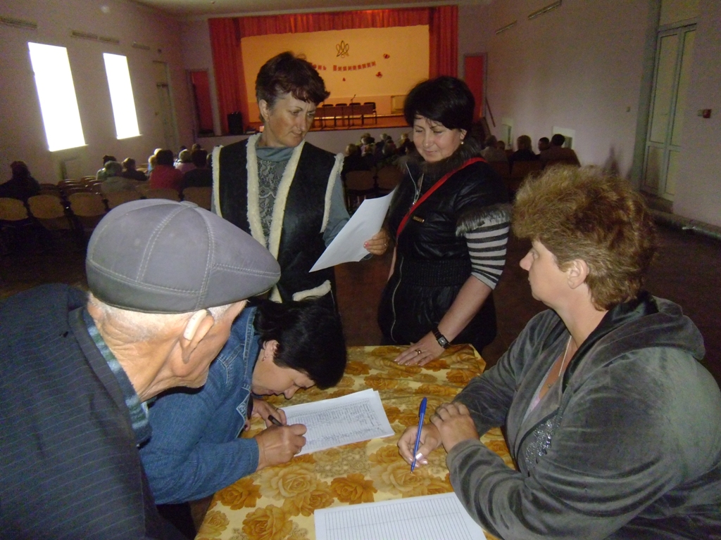 …Сільський Будинок культури був схожий на вулик: і ті, хто зайняли сидячі місця, і ті, хто стояли у проходах, - всі розмовляли емоційно, на підвищених тонах, переконували, перекрикували один одного. Було зрозуміло, наскільки сильно їм болить це питання, та наскільки важливий привід зібрання… Щоб убезпечити себе від звинувачень у «не легітимності», перед входом до зали було відкрито реєстрацію учасників. Кожен, хто заходив, офіційно засвідчував свою участь у зборах власним підписом. У повітрі зривалися вигуки «Безчинство!», «Ошукали!», «Запроданці!»… Головуючому декілька раз довелося закликати присутніх до спокою, щоб зрештою розпочати громадські збори. Ніхто не хотів мовчати, кожен хотів бути почутим. А це – дві групи опонентів. Перша - найбільш масова – за ініціативу об`єднання з Олександрівською громадою; інші – зовсім незначна – самі депутати на чолі з головою В.В.Матющенко, які попросту перекрикували зал словами «Будемо самі! Ні з ким об’єднуватись не треба!»