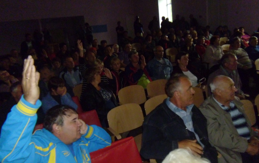 За понад три години часу, впродовж якого тривало обговорення, мали можливість виступити усі, хто бажав. Окремі виступи зривали аплодисменти, натомість інші – проводжали під свист. Так, Прибузький сільський голова В.В.Матющенко попросту «образився» на земляків, і покинув президію після того, як йому не дали договорити про, образно кажучи, «золоті груші на прибузьких вербах»… А іншими словами, прекрасне нинішнє життя громади. Один із сільських депутатів спробував підтримати свого очільника, та люди практично освистали і такого «захисника народу».