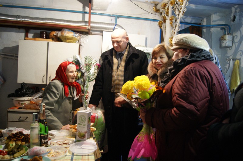 17 грудня голова райдержадміністрації І.В.Рубський, заступник голови районної ради В.М.Каратеєва, начальник управління праці та соціального захисту населення райдержадміністрації Н.І.Якимчук, голова міської організації ветеранів війни та праці Л.В.Андреєва привітали з 90-річним ювілеєм жительку с.Христофорівка Білик Ганну Іванівну та подарували цінні подарунки.
