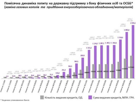 Серед учасників програми найбільш популярним енергоефективним продуктом залишається придбання матеріалів і обладнання. За цей тиждень залучено 6096 «теплих» кредитів на суму майже 99 млн гривень.