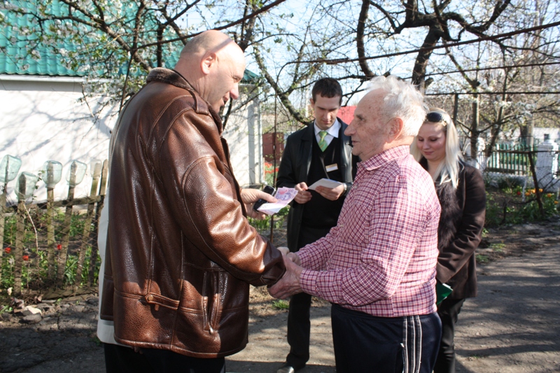 Голова Баштанської райдержадміністрації Рубський Іван Васильович та голова районної ради Луценко Людмила Іванівна відвідали стаціонарне відділення для постійного або тимчасового проживання територіального центру соціального обслуговування (надання соціальних послуг) Баштанського району та привітали ветеранів з Днем Перемоги, а інваліду Великої Вітчизняної війни Чаусу Івану Прокоповичу вручили грошову допомогу в розмірі 600 грн. (300 грн. обласного бюджету та 300 грн. – з районного бюджету)