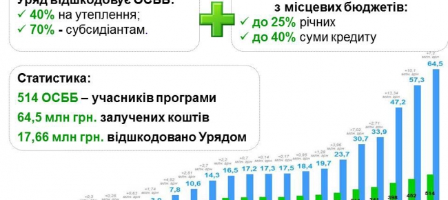 Загалом, з початку дії програми її учасниками стали 514 ОСББ, які освоїли майже 65 млн. грн на утеплення житла.