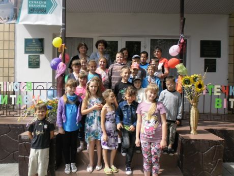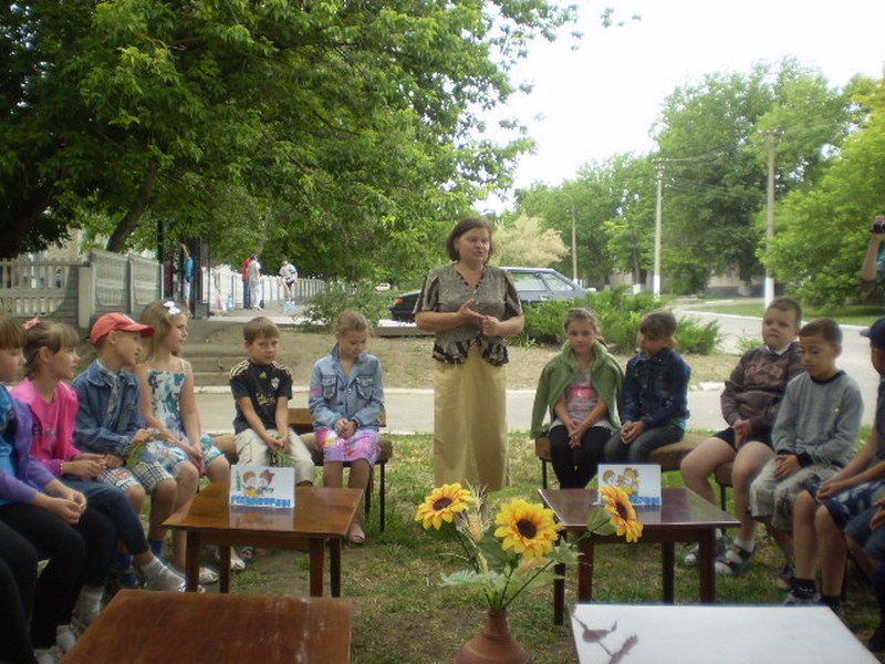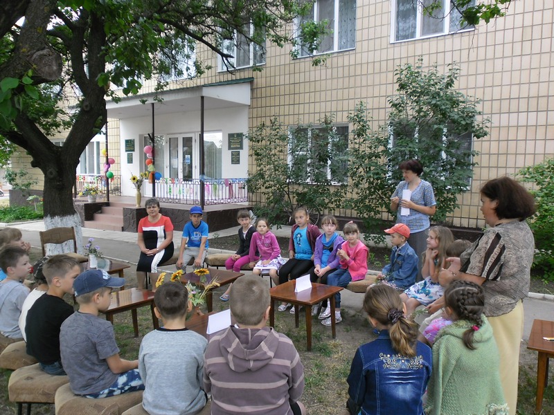 Цьому святу та нашим юним читачам ми, працівники дитячої районної бібліотеки, присвятили розважально-пізнавальну годину «Веселімося, читаємо, літо зустрічаємо»,яку провели на галявині біля яскраво оформленого приміщення бібліотеки.На західбули запрошені учні 2-Б класу ЗОШ№1 з вчителем Драною А.В. та інші читачі бібліотеки.