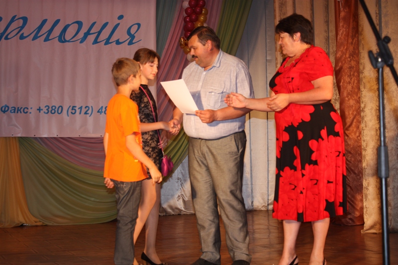 Юних артистів старших вікових категорій вітали перший заступник голови райдержадміністрації Сергій Шевченко, голова районної ради Людмила Луценко, а також депутат обласної ради від Партії регіонів, голова правління благодійного фонду «Гармонія», який був головним спонсором гала-концерту, Фелікс Ольшевський.