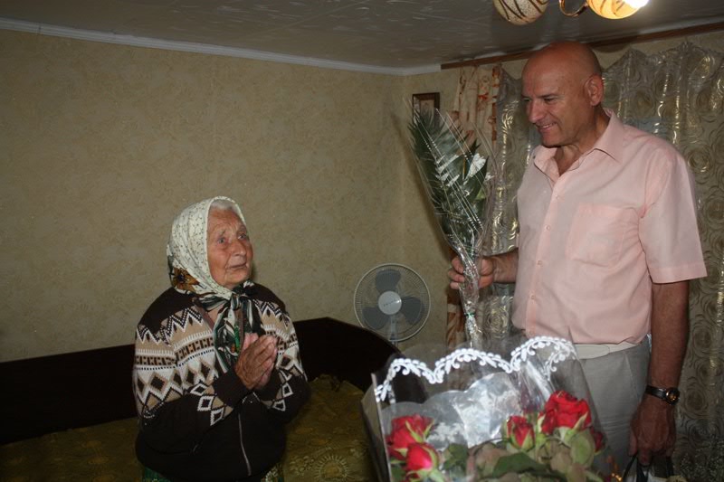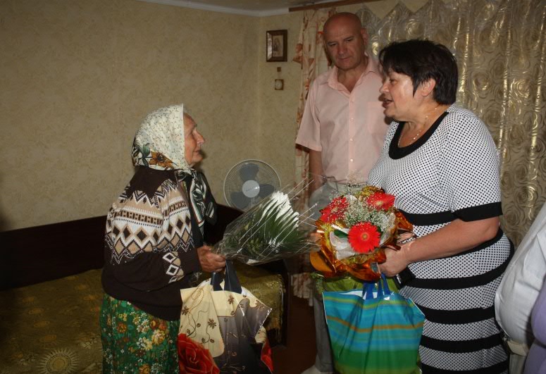 Щоб привітати з Днем народження та вручити квіти з подарунками до оселі іменинниці завітали почесні гості: голова РДА Іван Рубський, голова районної ради Людмила Луценко, міський голова Володимир Рибаченко та голови районної і міської ради ветеранів Лідія Андрєєва та Ніна Буцька, які побажали ювілярці Божого благословення, щастя та любові від рідних.