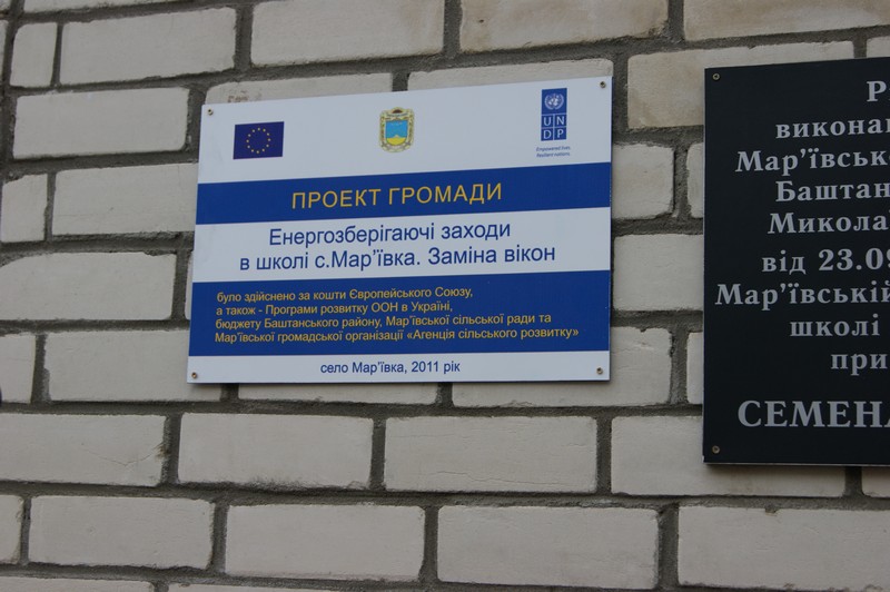 Громада по справжньому раділа, адже їхні ініціативи стають реальністю та у школі замінено 57 вікон. Проект виконувався на умовах спів фінансування. Так, загальна вартість проекту складала 182,496 тис.грн., в тому числі, кошти проекту ЄС/ПРООН «Місцевий розвиток, орієнтований на громаду» - 79,9 тис.грн., кошти районного бюджету - 76,0 тис.грн., кошти сільської ради - 14,5 тис.грн., кошти громади 12,1 тис.грн.