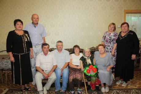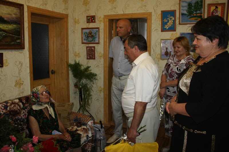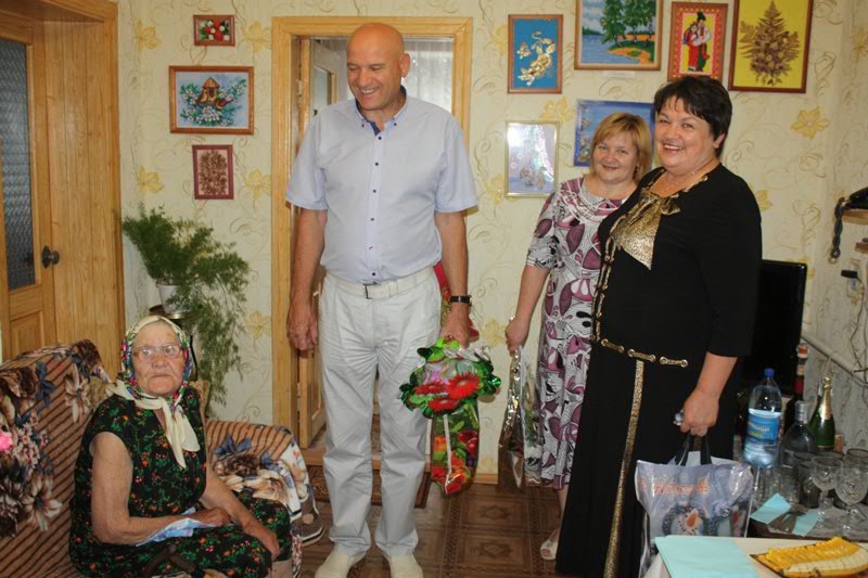 Для того, щоб поздоровити іменинницю та вручити святкові подарунки в День народження, до її оселі  завітали голова Баштанської РДА Іван Рубський, голова районної ради Людмила Луценко, міський голова Володимир Рибаченко,  голови районної та міської ветеранських організацій Лідія Андрєєва і Ніна Буцька, а також начальник управління праці РДА Ніна Якимчук, які бажали щастя  та Божого благословення довгожительці та усій її родині.