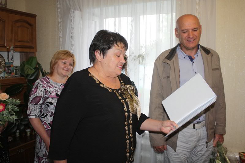 Щоб привітати  довгожительку з Днем народження, до неї в гості завітали гості з обласного та районного центрів: голова РДА Іван Рубський, голова районної ради Людмила Луценко, начальник управління соціального обслуговування та аналітичної роботи департаменту соціального захисту населення Миколаївської ОДА Олена Кірова, Мар'ївський сільський голова Надія Орлова, голова районної ветеранської організації Лідія Андрєєва та начальник управління праці Ніна Якимчук.