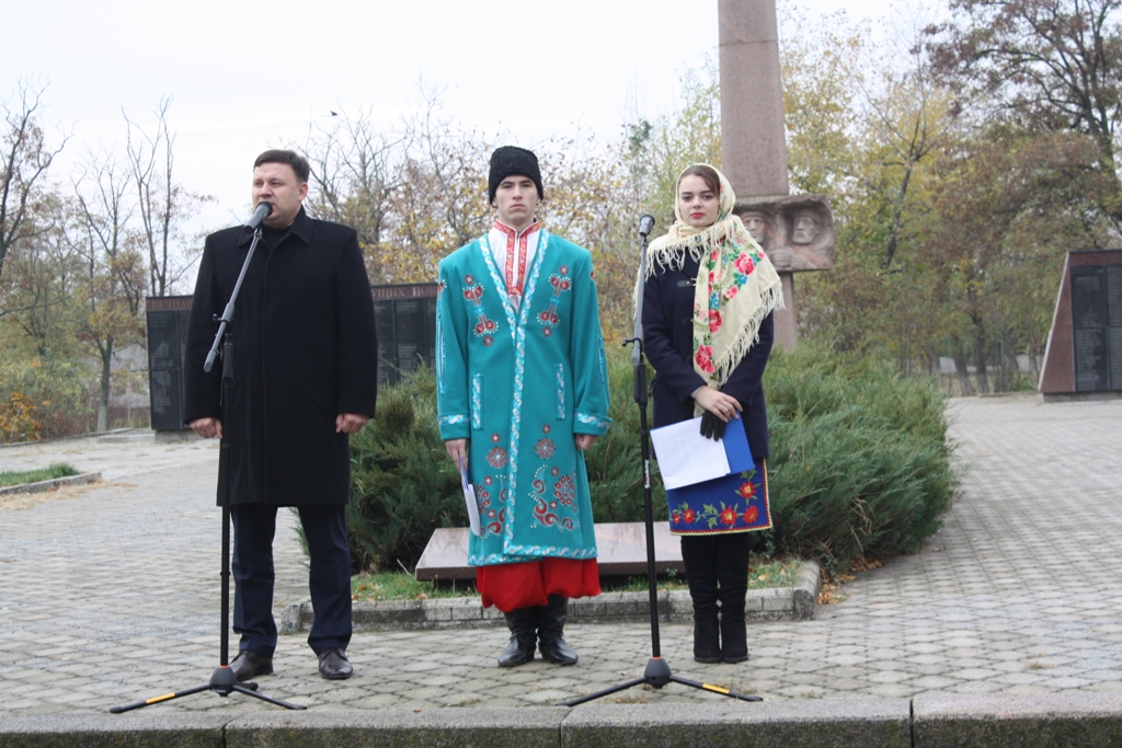 Схожі виклики сьогодні постали перед Україною знову. Учасники антитерористичної операції на сході країни відстоюють право на незалежність та свободу. Свята справа для нас - відстояти мир та не зрушити з обраного шляху»  - зазначив у своєму виступі перший заступник голови райдержадміністрації, виконувач функцій і повноважень голови райдержадміністрації Олександр Славінський.