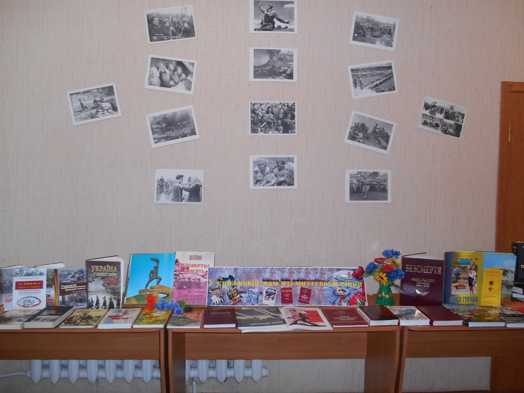 Ця книжкова виставка – вияв поваги та шани до воїнів-ветеранів, данина пам’яті та слави тим, хто ціною власного життя визволяв Україну від фашистської навали.