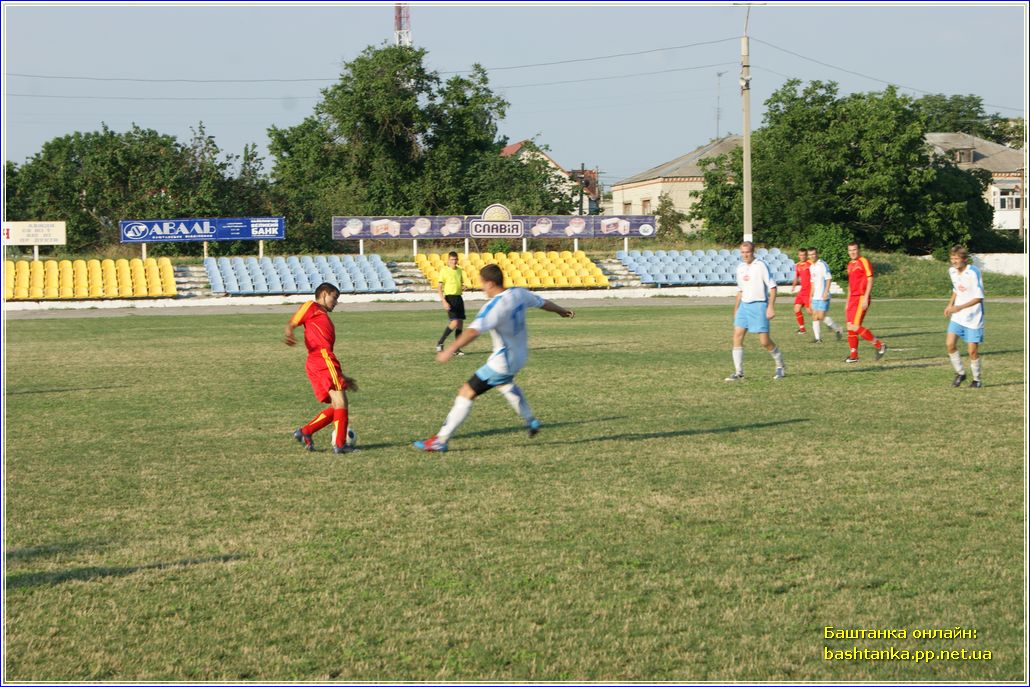 Гості цього року вперше беруть участь у турнірі такого класу. Переважна більшість гравців – молоді футболісти без великого досвіду, тому уся гра була практично на полі «Еліки». Якщо й відбувалися контратаки, то вони завершувалися далеко від воріт голкіпера «Славії» Олександра Єрещенка. Відкрив рахунок на 29-й хвилині І тайму Вадим Трибрат (16). Через три хвилини подвоїв рахунок та на 44-й хвилині забиває третій гол у ворота «Еліки» Олександр Локотир (3). Перший тайм завершився з рахунком 3:0 на користь баштанців.