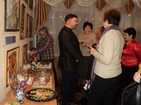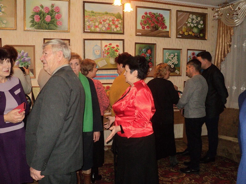 Цього дня у виставковій залі панували квіти. Квіти у руках художниці від вдячних шанувальників і квіти на картинах, на розписних тарелях, дощечках, шкатулках, вазах, мальованках. І навіть така проста кухонна приналежність як сито у руках майстрині перетворилась на витвір мистецтва, який прикрасить інтер’єр у домі найвишуканішої господині. Алла Сергіївна – подібна феї-чарівниці: в її руках пензлі, неначе чарівні палички, перетворюють прості речі у казкові образи. Невелика бібліотечна зала перетворилась на рукотворну оазу краси, королівство чарівних кольорів.