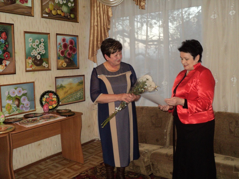 Ведуча заходу Ірина Озерова розповіла присутнім про творчі здобутки майстрині. Її ім’я відоме не тільки в нашому районі та області, а й за їх межами. Алла Сергіївна разом з іншими народними митцями гідно представляє Баштанщину на обласних та всеукраїнських фестивалях народної творчості та виставках. У творчому доробку майстрині більше 400 робіт. Це живописні натюрморти, пейзажі, ескізи вітрин, вироби з декоративно-прикладного розпису, графічні та розписні панно, штучні квіти. Кожна по своєму гарна, неповторна, в кожній частинка душі майстрині.