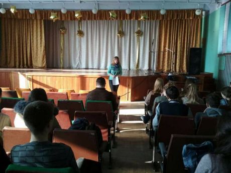 Захід відбувся в актовій залі, де розмістилось близько 80 учнів старших класів.