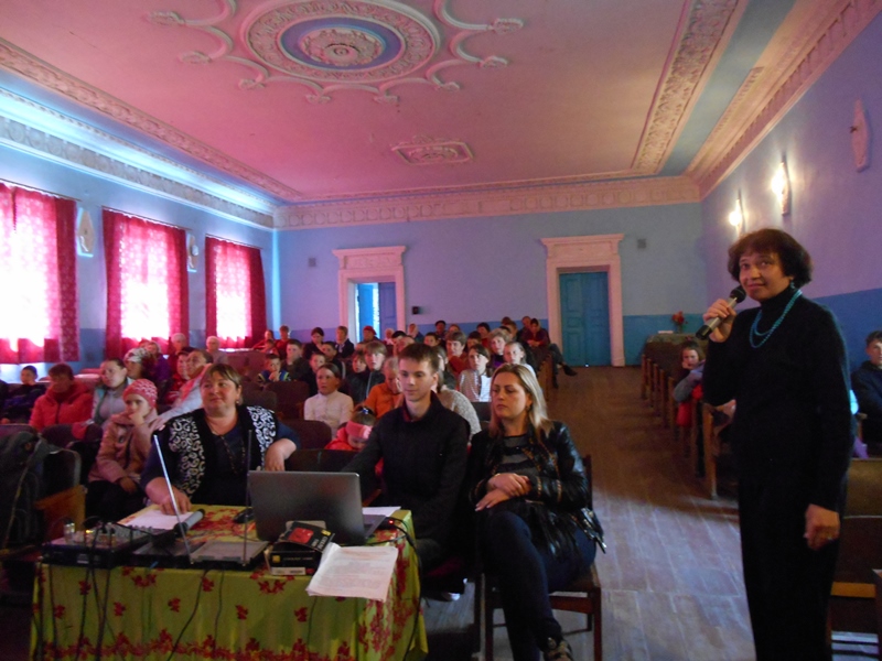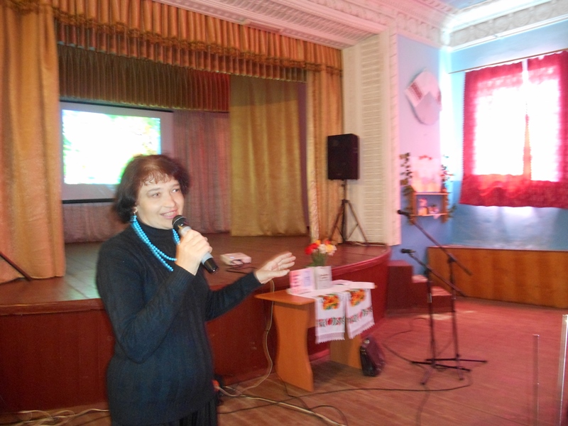 Ведуча заходу, завідуюча відділом центральної районної бібліотеки Л.Є.Шкарбан привітала присутніх, побажала всім приємного спілкування з книгою, а молодших читачів запросила до участі в казковій вікторині, яка зацікавила не тільки маленьких, а й старших мешканців села. Дружно і завзято відповідали на питання вікторини як маленькі читайлики, так і їхні батьки, яким і самим було приємно повернутись в золоту пору свого дитинства. Вся вікторина супроводжувалась мультимедійним відеопоказом. З великого екрана своїх шанувальників вітали казкові герої та персонажі з улюблених мультфільмів.