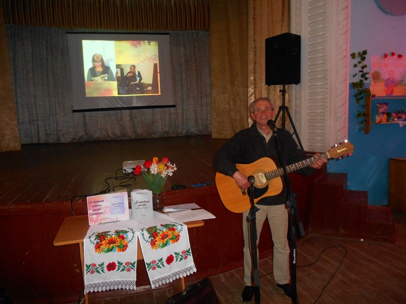 Продовжилось святкове дійство презентацією поетичної збірки баштанського поета, пісняра, музиканта Віктора Коваленка «Зачарований промінь». Лунали ліричні і патріотичні твори у виконанні автора – чудові поезії й пісні, які розкривають багатогранність таланту В.Коваленка, його палку любов до рідного краю та його людей. Панувала атмосфера простого і невимушеного спілкування з глядачами. Зворушливим став момент наприкінці творчої зустрічі, коли баштанському митцеві подарували його портретні зображення, написані новоіванівськими самодіяльними художницями - Л.А.Щипіциною та Т.Г.Косюк.