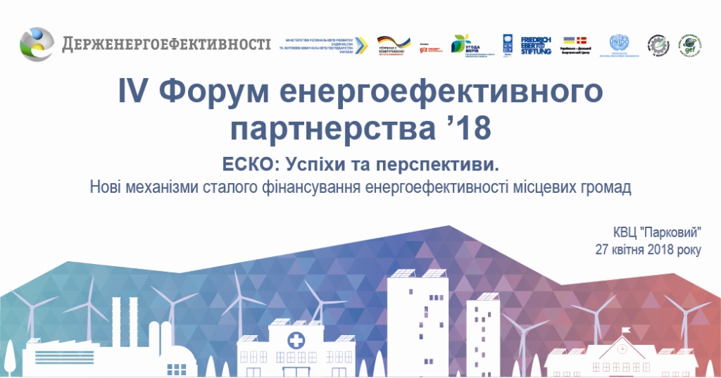 Переваги енергосервісу, особливості укладання контрактів та успішні історії запроваджених проектів дізнавайтеся на IV Форумі енергоефективного партнерства «ЕСКО: Успіхи та перспективи. Нові механізми сталого фінансування енергоефективності місцевих громад», який проводить Держенергоефективності 27 квітня 2018 р. у м.Києві у КВЦ «Парковий» (http://saee.gov.ua/uk/events/previews/2261).