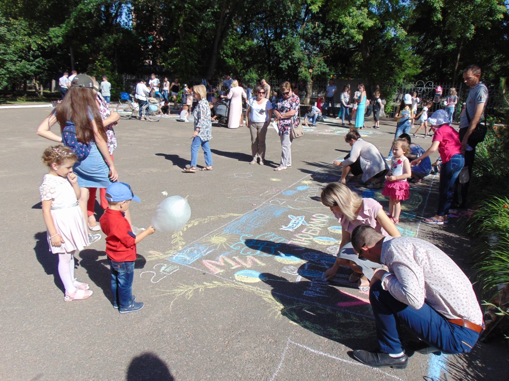 Розпочалася святкова програма конкурсом малюнка на асфальті «Діти єднають Україну», в якому взяли участь 20 родин, діти яких є вихованцями закладів дошкільної освіти міста. Журі визначило переможців: Гран-Прі отримала родина Бабич Софії (ЗДО «Віночок»), І місце - Горденко (ЗДО «Віночок»), ІІ місця - родини Кунпан (ЗДО «Чебурашка»), Слизьких (ЗДО «Ягідка»), ІІІ місця - родини Карданюк (ЗДО «Віночок»), Харитонової Катерини (ЗДО «Ягідка»).