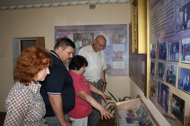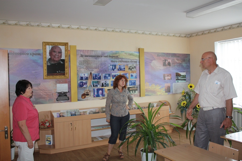 Очільники району оглянули навчальні класи та кабінети, поспілкувались із вчителями.  Директор гімназії Олена Кушнір запросила гостей пройти до кабінету української мови та літератури. Цей клас можна сміливо називати кімнатою-музеєм, у якому основним є презентація матеріалів, присвячених нашому славетному земляку Олександру Сизоненку. Стенди прикрашені фотографіями та особистими листами письменника до Баштанської гімназії.