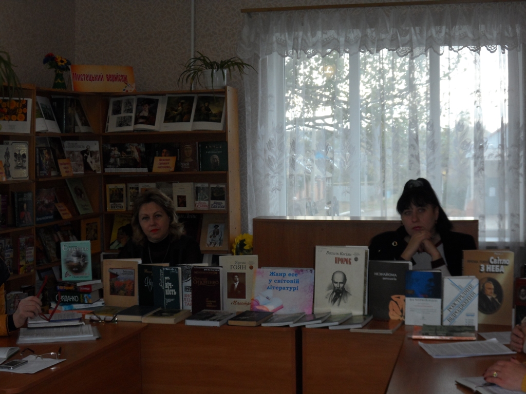 До уваги учасників лабораторії мовознавця було презентовано ресурс бібліотеки за темою «Жанр есе у світовій літературі». Його провела провідний бібліотекар відділу обслуговування ЦРБ Штефан Любов Василівна. Вона представила книги письменників-есеїстів, починаючи із класиків світової літератури до сучасних українських авторів, які є у фондах районної бібліотеки. В її презентації звучали імена М.Монтеня, Д.Дідро, Вольтера, А.Франса, Р.Роллана, Антуана де Сент-Екзюпеі, Ч.Діккенса, Джорджа Орвелла, Джона Ґолсуорсі, Бернарда Шоу, Марка Твена, Ф.Достоєвського, О.Герцена, М.Ломоносова, І.Буніна та ін. Значна частина масиву вітчизняних есеїв припадає на щоденники й мемуари, яскравими авторами яких є Володимир Винниченко, Сергій Єфремов, Олександр Довженко, Аркадій Любченко, Ірина Жиленко, Юрій Шерех. В українській літературі риси есеїстичного жанру і стилю також властиві Юрію Смоличу, Олесю Гончару, Дмитру Павличку, М.Рильському. Вражають читача есеїстичні публікації сучасних українських письменників Юрія Винничука, Оксани Забужко, Юрія Андруховича, Сергія Жадана, Олександра Ірванця, Юрка Покальчука, Олекси Ульяненка, Олександра Шкляра, Володимира Цибулька та інших.