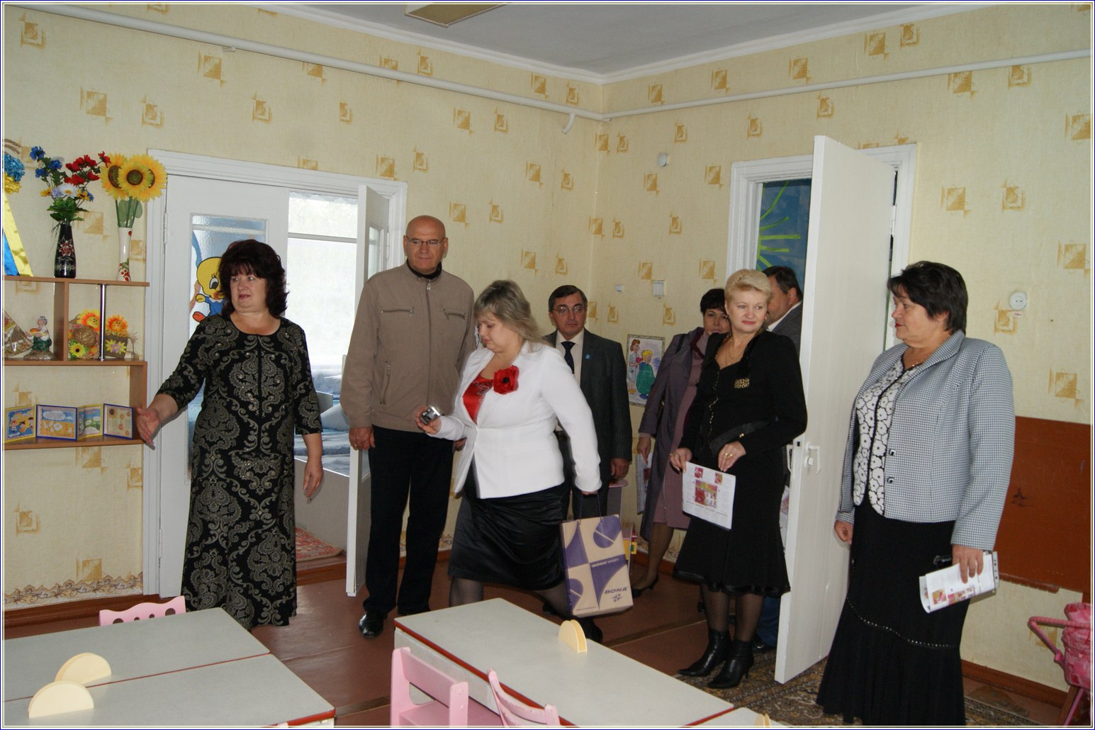 Тетяна Митрофанова, директор ДНЗ, ознайомила із закладом. Гості оглянули приміщення груп, які сьогодні відкрили після реорганізації школи-саду у дитячий садок та залишилися задоволені побаченим — великі, світлі та затишні кімнати переповнені дитячим сміхом та гомоном. Вихованці цього садку відчувають себе дійсно як вдома.