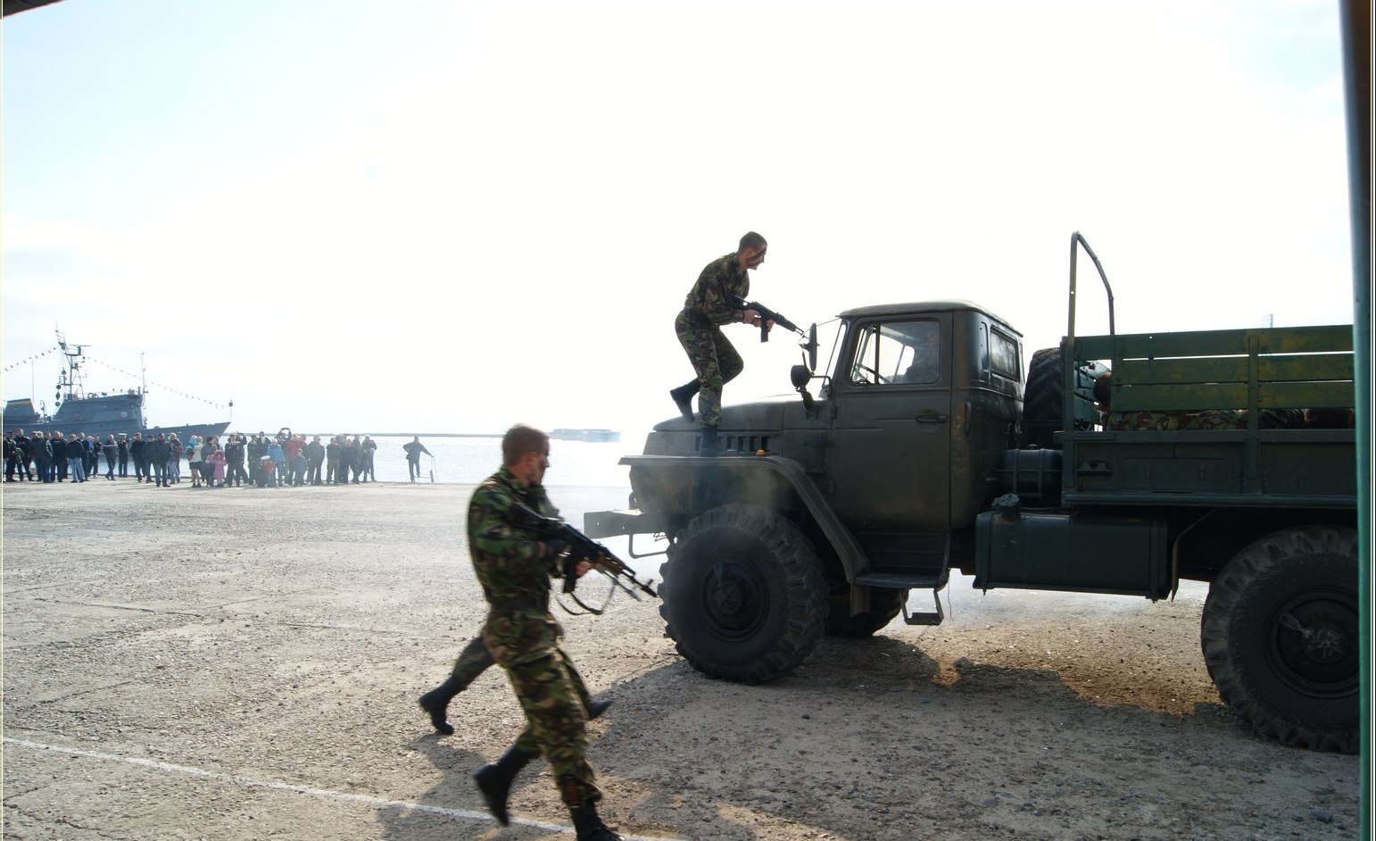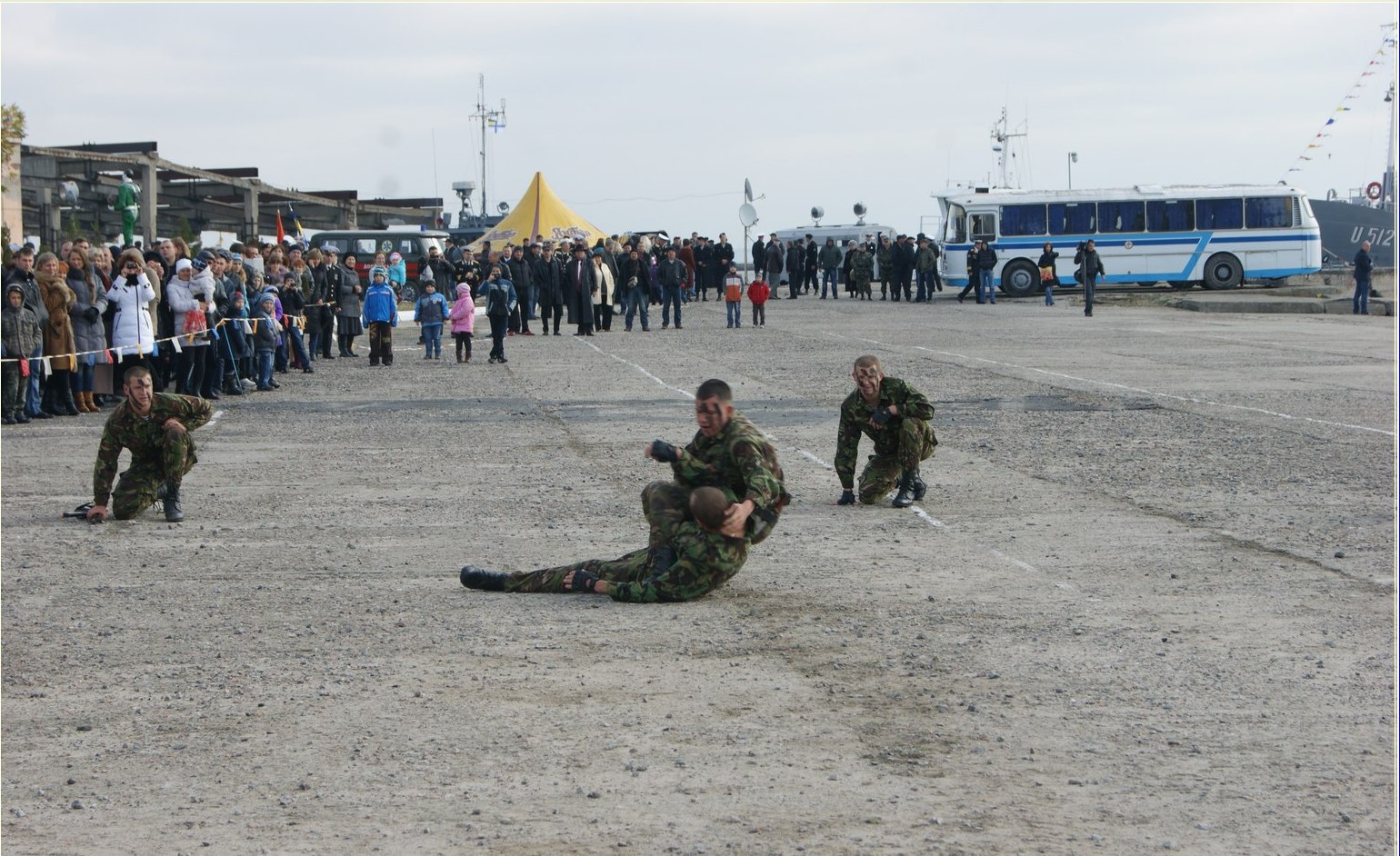 Заходи розпочалися у військовому порту «Очаків». За традицією, спускаючи на воду вінок з квітів, присутні вшанували пам’ять загиблих моряків. Святковим маршем парадні розрахунки військової частини, у супроводі військового оркестру, пройшли повз керівництва частини та поважних гостей з Міністерства Збройних Сил України. Захоплюючим був показ бойових спроможностей частини, підготовлений офіцерами та військовослужбовцями за контрактом: прийоми рукопашного бою, визволення від бойовиків військового корабля і порту, транспортування техніки, спорядження та ін. Завершились видовищні заходи виступом юних спортсменів військово-патріотичного клубу «Майський».