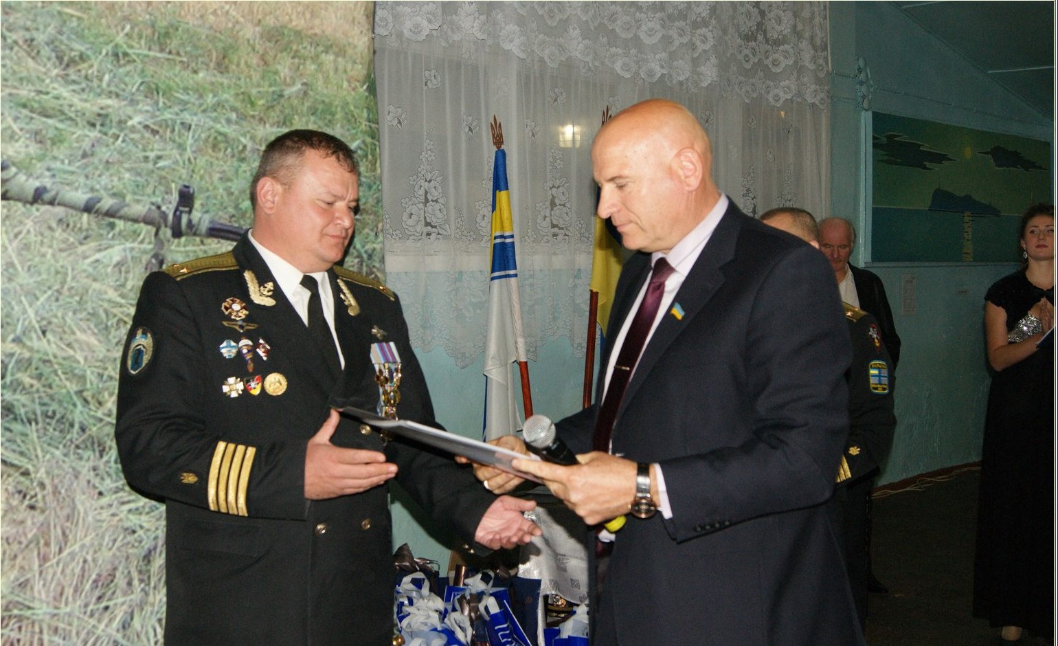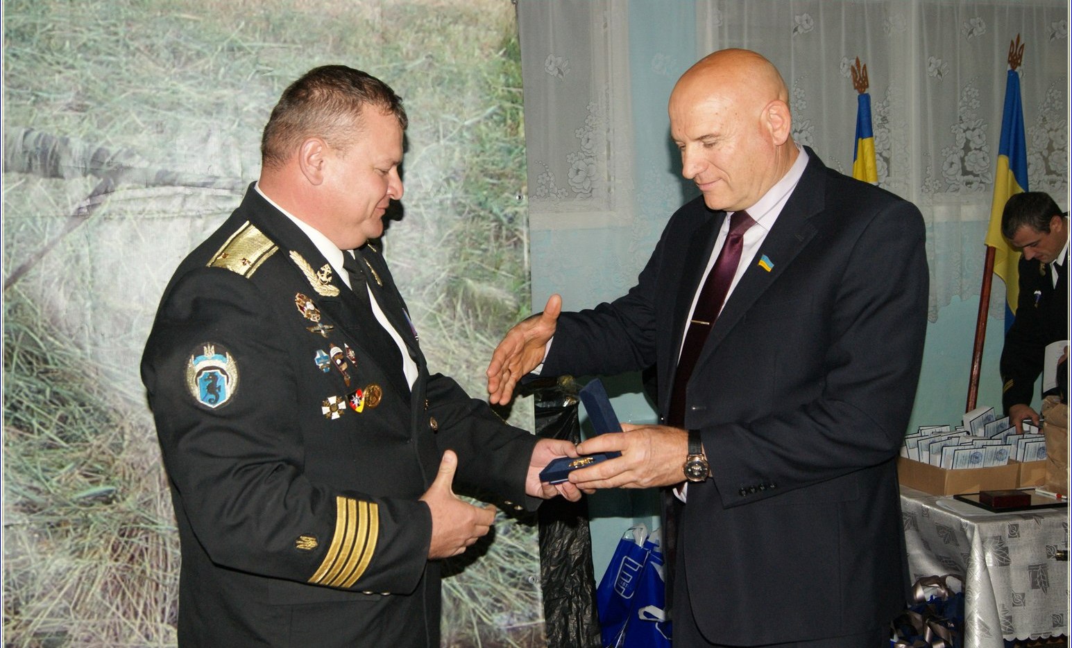 Голова райдержадміністрації І. В. Рубський вручив командиру частини капітану ІІ рангу О. В. Зінченку у подарунок ноутбук та добірку плакатів про С. П, Бойченка. Іван Васильович зазначив, що не даремно частина є підшефною Баштанської райдержадміністрації, адже район тісно пов’язаний з флотом. На наших землях, завдяки козацтву, зародився Чорноморський флот. Крім того, у Христофорівці проживав флотоводець Микола Аркас, а біля Мар’ївки, на річці Інгул, робив перші кроки у великий спорт король «батерфляю» Семен Бойченко. Олексій Володимирович Зінченко за значний внесок у розвиток частини, військово-патріотичне виховання, вручив І. В. Рубському ювілейну відзнаку.
