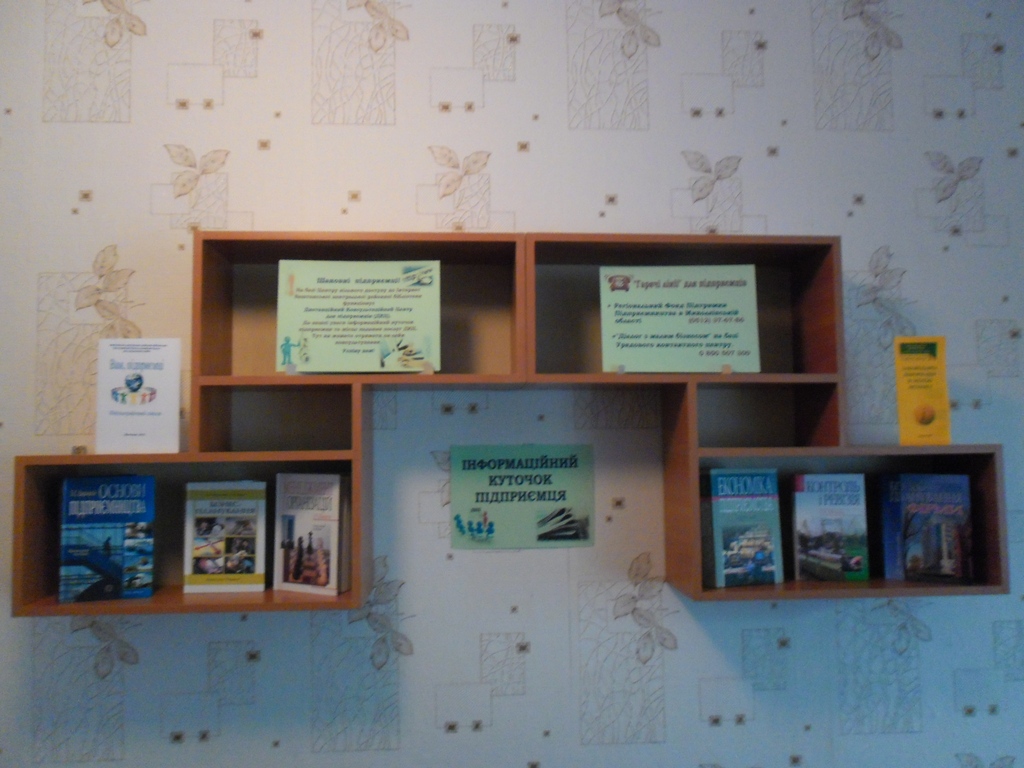 У Центрі вільного доступу до Інтернет Баштанської центральної районної бібліотеки створено «Інформаційний куточок підприємця». Тут представлена відповідна література, вебліографічний список «Вам, підприємці» та номери телефонних «гарячих ліній» для підприємців.