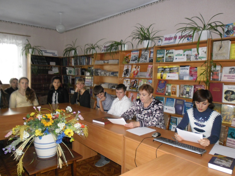 7 листопада у центральній районній бібліотеці до Дня української писемності та мови, який було встановлено Указом Президента України 1997 року, був проведений урок мови «У слові – вічність». На заході були присутні учні 9-А класу ЗОШ №1 разом з вчителем української мови та літератури Л.І. Польовою. Бібліотекар 1 категорії І.М. Домашова та провідний бібліотекар Л.В. Штефан розповіли дітям про історію виникнення української мови, про різновиди старослов’янських писемних знаків: кирилицю та глаголицю. Присутні дізналися про те, що започаткування сучасної української літературної мови пов’язується з конкретною датою – виданням «Енеїди» І. Котляревського у 1798 році. Ця знаменита поема стала першим друкованим твором, написаним живою народною мовою. На заході прозвучали пісні, вірші та гуморески про чарівну українську мову.
