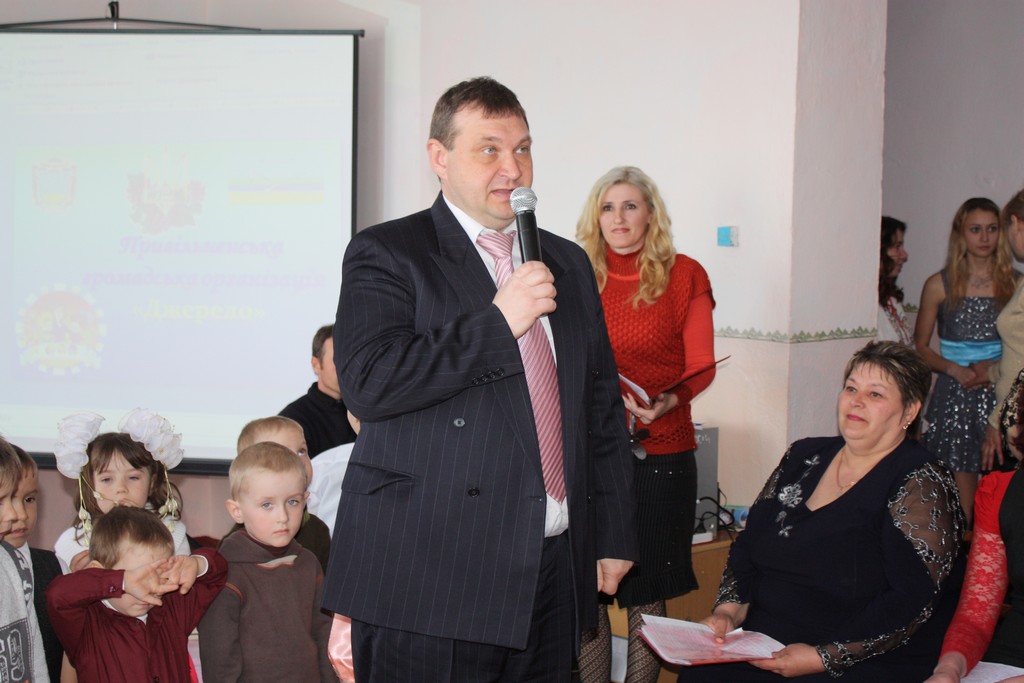 Зустрічали гостей дітлахи, із настороженою допитливістю вдивляючись у кожного очинятами-ґудзичками. Вітання керівництва району, почесних гостей, подарунки малечі від сільської ради, все було на святі. Найбільше вражали  своїми танцями та співом малеча, яка із вдячністю подарувала гостям поробки власними руками та прапорці громадської організації «Джерело».