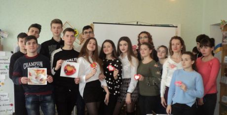 На захід до бібліотеки завітали учні 10-Б класу Баштанського ОЗЗСО №1 разом з вчителем інформатики С.С.Правилом. Бібліотекар Валентина Стоянова привітала присутніх та ознайомила з історичними фактами виникнення свята. Ведуча презентувала книжкову виставку «Кохаю…Читаю…Бажаю…», на якійбули представлені художні видання, вірші, поемипро кохання. Бібліотекар також познайомила підлітків з поетичними творами членів літературно-мистецького клубу «Роксолана», місцевих поетів Василя Шведова та Віктора Коваленка. А учениці цього класу - Анастасія Колесник і Єлизавета Божко прочитали уривки з творів «Ромео і Джульєтта» В.Шекспіра та «Книга пісень» Г.Гейне.