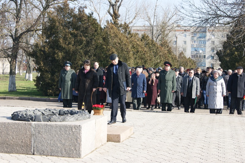 Урочиста естафера розпочалась покладанням квітів до пам’ятних знаків генерал-лейтенанту Пушкіну, воїнам – інтернаціоналістам та Вічного Вогню.