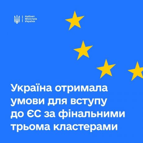У грудні українська сторона отримала умови – бенчмарки – за трьома іншими кластерами: 1 «Основи процесу вступу до ЄС», 2 «Внутрішній ринок» та 6 «Зовнішні відносини».