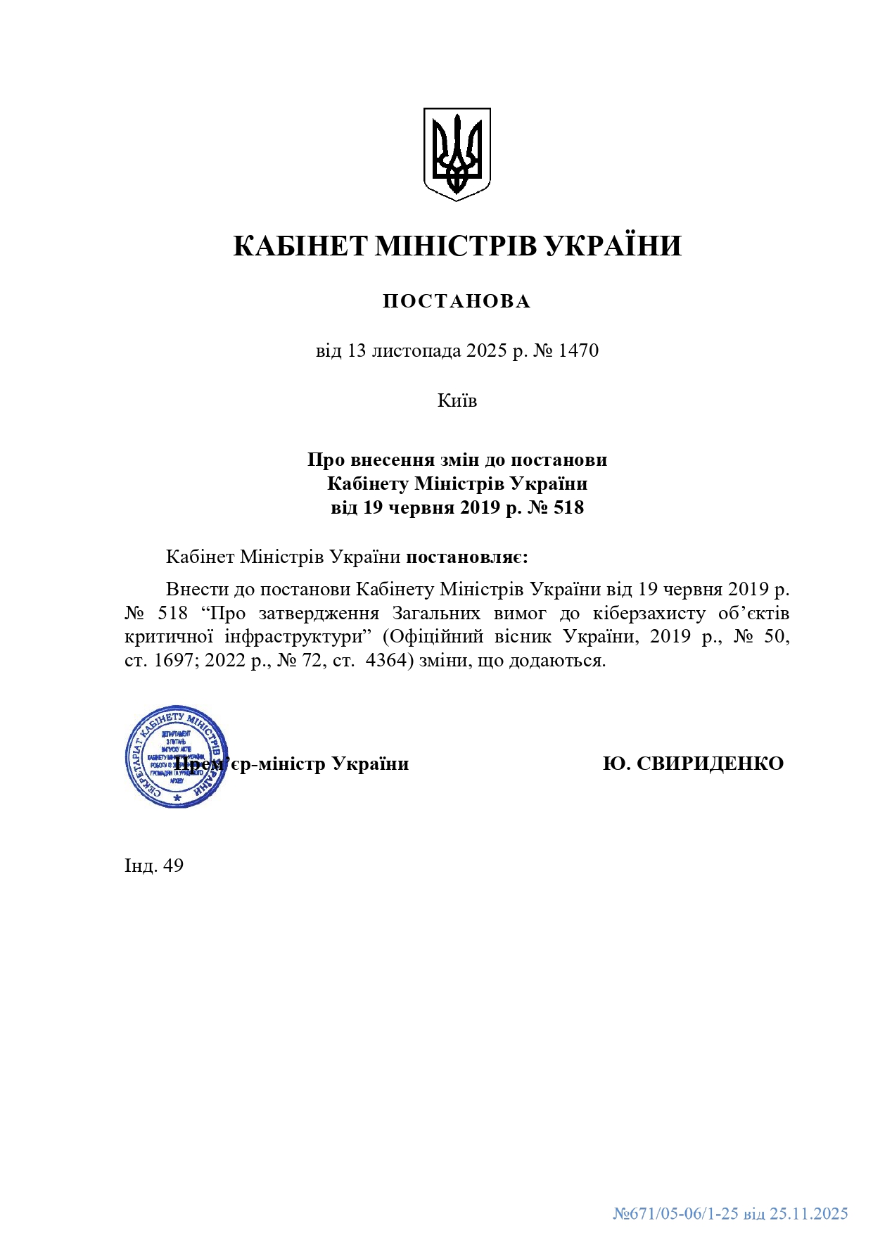 Кабінетом Міністрів України затверджено постанову від 13 листопада 2025 року № 1470 "Про внесення змін до постанови Кабінету Міністрів України від 19 червня 2019 р. № 518”.