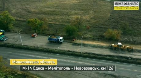 У рамках програми Президента України Володимира Зеленського «Велике будівництво» на 126 км автошляху М-14 в Одеському напрямку дорожники продовжують укладання важкого цементобетону, завтовшки 26 сантиметрів.