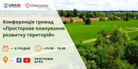 Захід має на меті проінформувати громади про чинне законодавство, ухвалене для проведення просторового планування територій громад. Зацікавлені громади зможуть отримати практичні інструменти для успішної розробки та використання комплексних планів просторового розвитку. Конференція стане ефективним майданчиком для дискусії та обговорення питань щодо розвитку земельного законодавства між громадами та представниками влади. Дата та час: 9 грудня 2021 року о 15:00–18:00 Місце: зважаючи на карантинні обмеження, запрошуємо громади і представників медіа взяти участь в онлайн-трансляції заходу на сторінках Програми USAID АГРО в YouTube (https://www.youtube.com/channel/AGRO) та Facebook (https://www.facebook.com/usaid.agro). У заході візьмуть участь: Джим Хоуп, директор Місії USAID в Україні та Білорусі; Олександр Корнієнко, заступник Голови Верховної Ради України; Роман Лещенко, міністр аграрної політики та продовольства України; Наталія Козловська, заступник Міністра розвитку громад та територій України; Сергій Завадський, в.о. голови Держгеокадастра; та інші. Під час конференції відбудеться підключення представників Пісочинської та Роганської громад, які поділяться своїм досвідом із впровадження комплексних планів просторого планування територій та представлять створені геопортали своїх громад. Також учасники зможуть ознайомитися зі зразками даних, документацією. Вони також отримають рекомендації щодо підготовки картографічної основи, розробки технічних завдань для замовників і виконавців та проведення екологічної оцінки. Спікери розкажуть про наявні інструменти оприлюднення даних на Національному геопорталі Національної інфраструктури геопросторових даних. Посилання на детальну програму: https://bit.ly/32ca8Q7. Для участі в заході просимо заповнити анкету: https://usaid-agro.registration. *** Програма USAID з аграрного і сільського розвитку (АГРО) – це п’ятирічна Програма Агентства США з міжнародного розвитку (USAID), що впроваджується компанією Кімонікс Інтернешнл. Мета програми: прискорення економічного розвитку сільських громад України, що потребують найбільшої підтримки, шляхом покращення управління в сільськогосподарському секторі, що сприятиме розвитку більш продуктивних, сучасних та прибуткових мікро, малих та середніх сільськогосподарських підприємств (ММСП). Цілі Програми USAID AГРО: покращення продуктивності та доступу до ринків у цільових ланцюгах доданої вартості, удосконалення функцій підтримки та нормативно-правової бази у аграрному секторі. Програма USAID АГРО допоможе збільшити доходи с\г ММСП і їхній доступ до фінансування та створити в Україні справедливий і прозорий ринок с\г земель, що зменшить корупцію в аграрному секторі. Сторінка АГРО в Фейсбук: https://www.facebook.com/usaid.agro/ . *** Американський народ, через Агентство США з міжнародного розвитку (USAID), надає економічну та гуманітарну допомогу по всьому світу понад 50 років. В Україні допомога USAID надається у таких сферах, як: економічний розвиток, демократія та управління, охорона здоров’я і соціальний сектор. В Україні Агентство США з міжнародного розвитку надає технічну та гуманітарну допомогу починаючи з 1992 року. Для того, щоб отримати додаткову інформацію про діяльність USAID, просимо Вас звертатися до Відділу зв’язків з громадськістю Місії USAID в Україні за тел. (+38 044) 521-57-53. Також запрошуємо відвідати вебсайт Місії: http://www.usa