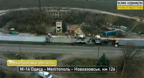 Після укладання верхнього шару цементобетону по основному проїзду правої смуги руху дорожники приступили до поширення дороги М-14 Одеса-Мелітополь-Новоазовськ на ділянці км 126+000 – км 129+122.