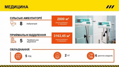 Також мешканці області отримали доступ до якісної медицини у восьми новозбудованих амбулаторіях. Сучасні амбулаторії з’явилися у селах Лимани, Галицинове, Мартинівське, Мостове, Катеринка та інші.