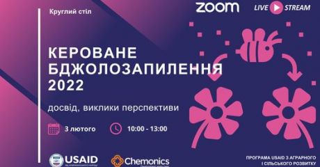 03 лютого 2022 року о 10.00 годині відбудеться онлайн захід (ZOOM-платформа) за темою: «Кероване бджолозапилення 2022: досвід, виклики перспективи».