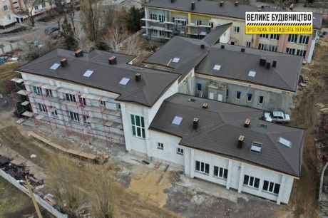 Стіни будівлі уже утеплено на понад 90%. Також підрядники повністю замінили покрівлю та утеплили цоколь. Наразі робітники завершують відмостку та ремонт приміщення харчоблоку.