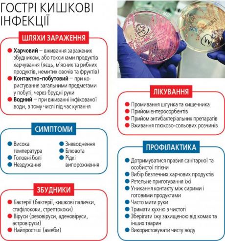 Збудники таких інфекцій потрапляють до організму, головним чином, з інфікованою водою, зіпсованими та неякісними харчовими продуктами або контактно-побутовим шляхом через брудні руки.