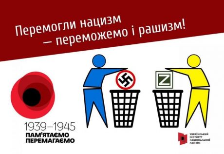 У 1939–1945 роках ворогом були нацисти, а сьогодні це рашисти – російська версія імперського націоналізму та фашизму. Тому традиційне гасло цих пам’ятних днів #ПамятаємоПеремагаємо» цього року на державному рівні дещо видозмінене і звучить так: «Перемогли нацистів – переможемо і рашистів!».