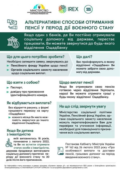 Під час війни можуть виникати труднощі з отриманням пенсії у зв'язку зі збоями у роботі окремих банків або через вимушений переїзд.