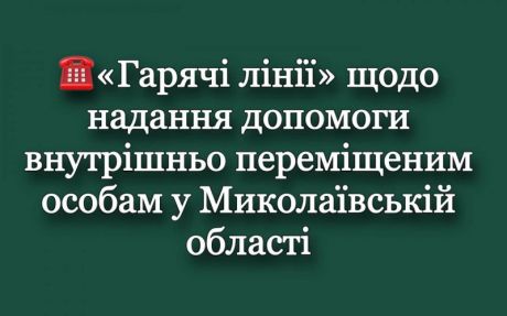 У Миколаївській області працюють «гарячі лінії» щодо надання допомоги внутрішньо переміщеним особам з питань розселення, евакуації та ін.