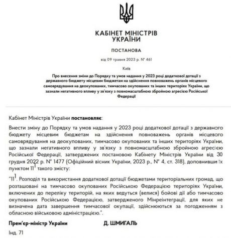 Відповідна постанова Уряду прийнята 09 травня 2023 р. за № 461.