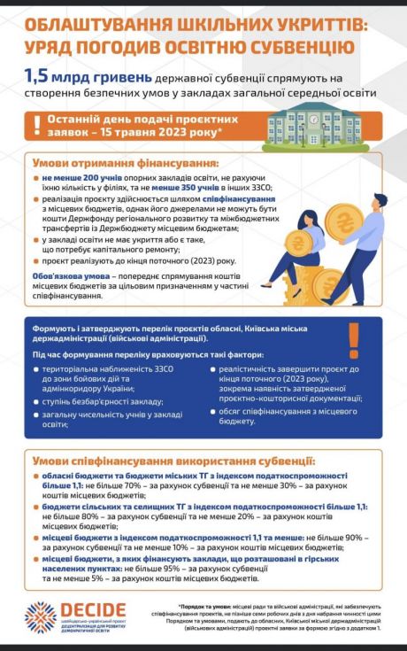 Про Створення укриттів у закладах освіти: за яких умов школи отримають кошти