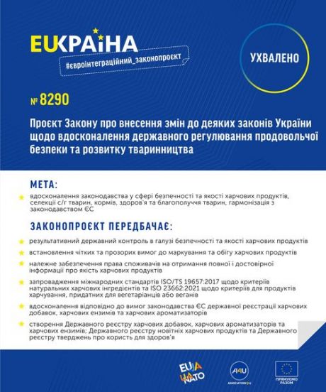 Верховна Рада України ухвалила в другому читанні та в цілому законопроєкт №8290 «Про внесення змін до деяких законів України щодо вдосконалення державного регулювання продовольчої безпеки та розвитку тваринництва».
